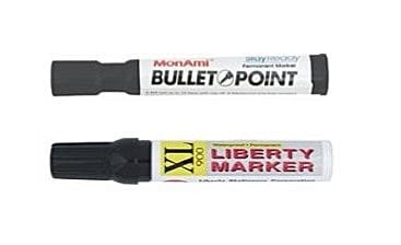 Quality bullet point and thick chisel permanent markers that the manufacturer claims can last up to 70 days without a cap.